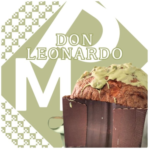 Don Leonardo Alta pasticceria Panettone artigianale al Pistacchio di Sicilia, mandarino tardivo di Ciaculli, cioccolato al pistacchio, sac à poche con crema pistacchio, composta di mandarino Ciaculli