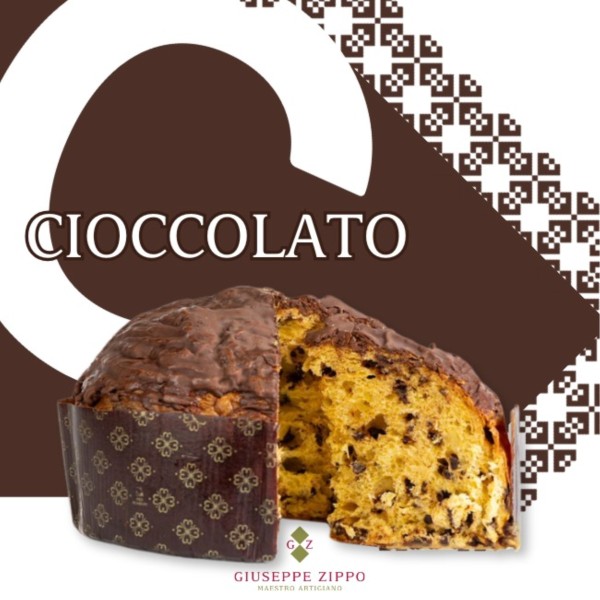 Panettone ai tre cioccolati artigianale con gocce fondente, al latte e bianco e glassa di cioccolato ala latte