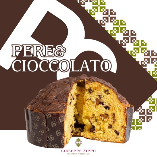 Panettone pera e cioccolato artigianale con gocce e glassa di cioccolato fondente
